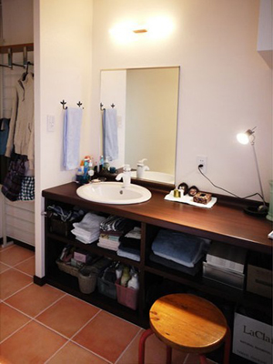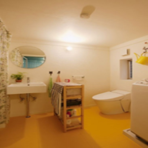 黃色的地磚明亮又帶給人希望,讓人情不自禁的忘卻疲憊變得舒適。圓形的鏡子與純白色的洗手池簡單卻不乏可愛與雅致,選些喜歡的小盆栽擺放上去,更顯得無比清新自然。多層的木質(zhì)儲(chǔ)物架,平時(shí)無形間分隔了空間,必要時(shí)還可以隨意移動(dòng),簡單方便??ㄍǖ膾煦^可以任意調(diào)節(jié)高度,不論是大人或是小孩子,使用起來非常方便。