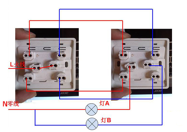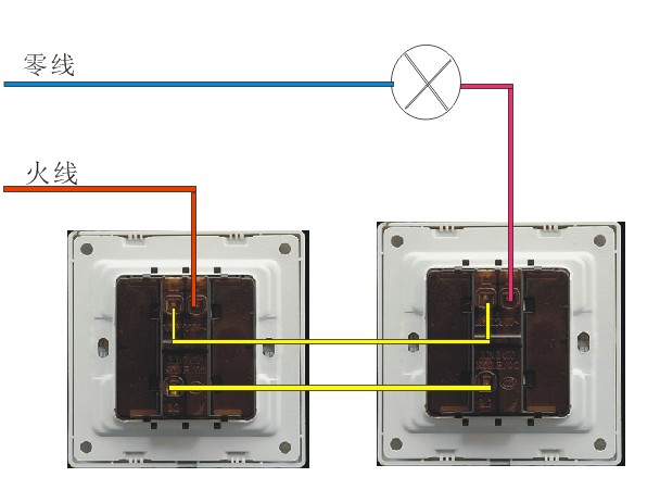 2、雙聯(lián)雙控開(kāi)關(guān)接線(xiàn)圖